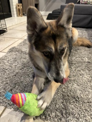 Hey there! Thank you for your feedback. We are so happy to hear the party pickle has held up well with your German Shepherd! We strive to make our toys durable, fun, and engaging. Don't hesitate to reach out to us via email at happy@bark.co with any questions or comments you may have. We always love to help. Thanks so much for choosing BARK!