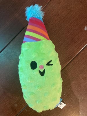 Invite Party Pickle Pedro to your pup's next party because this pickle dog toy relishes an opportunity to celebrate! Party Pickle Pedro is kind of a big dill made with a squeaker, crazy crinkle, and packed with fluff—a lot of fluff. It's pretty jarring. Go ahead, get your cornichon on!