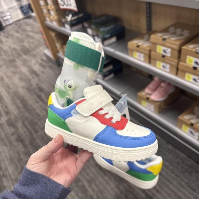 Toddler Jaid Solid Court Sneakers - Cat & Jack™ Blue/White/Red 10T: Faux Leather, Hook and Loop Closure, Non-Marking Sole, Closed Round Toe