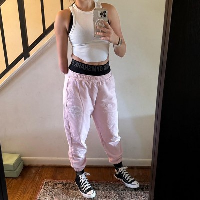 Absolutely love the fit and style of this tank. I got them in white and black and am ordering duplicates because they’re perfect for the gym ❤️ Will probably be great with jeans in the summer too! I’m 5’6”, 140lbs, and A/B cup. Wearing a small in photos but ordering in an XS in navy too. There is no seam or tightness at the button hem, so a smaller size won’t be an issue.