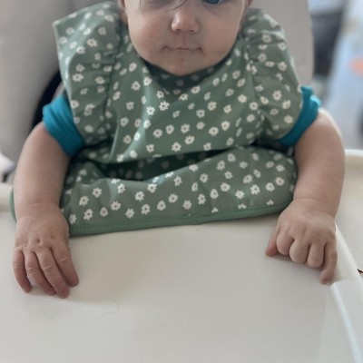 I love that its shortsleeved compared to other bib smocks and you can clean the outside with a warm towel to have it ready for the next meal. I wish it came in diffrent colors and designs