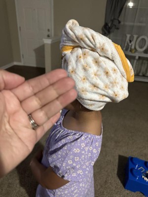 I received these products for free from the Hey, Bullseye™ sampling program in exchange for my honest review. I really like the idea of this towel and feels good but we've had trouble keeping it on their heads. The elastic part to fit over the button is a little tricky for little hands. Given this I'd recommend it for older children.