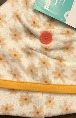 Kids' Hair Towel White Floral - Pillowfort™: Extra Lightweight Cotton Terry, Machine Washable, 9"x23"
