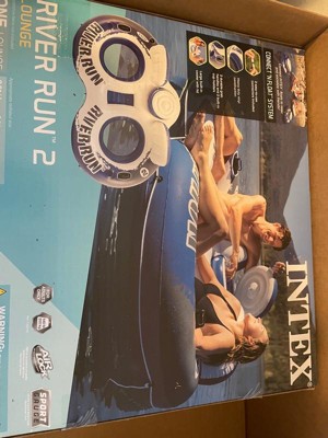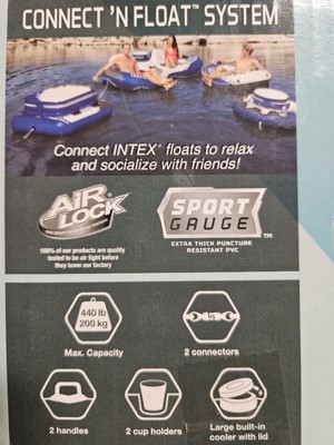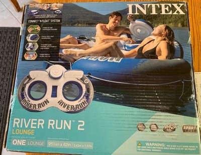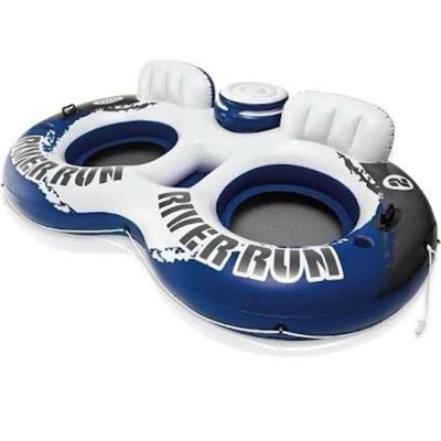 Intex River Run II Lightweight Durable 2 Person Water Tubes Outdoor Pool or Lake Floating Raft Lounger with Built In Cooler and Cupholders, Blue/White