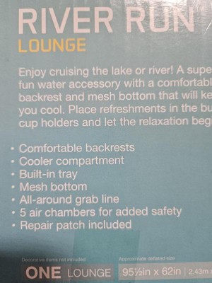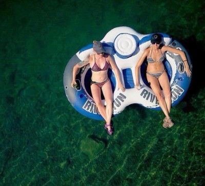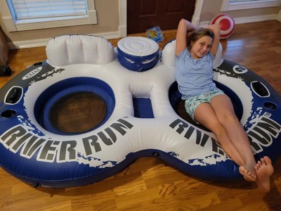 [This review was collected as part of a promotion.] Hands down the best double river run tubes! The quality is A+. This two person raft makes floating down the river or a lazy day on the boat or lake lots of fun!!! It's made of really thick, durable material and it doesn't take too long to inflate with a hand pump. The "cooler" in the middle is a good size and can hold lots of drinks and “snacks”. There's a plug in the bottom of the cooler so you can drain water out of it. The cup holders are nice and sturdy and the mesh in the seats are too. The seats are really big so there's lots of room to get comfy.