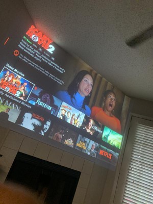 The projector is very bright. We couldn’t use it during the day. The problem we had was it was extremely difficult to get setup. It would buffer and it was right next to the WiFi. We got excited because we got it to mirror our phone but once we hit play within seconds it would buffer and not go back. The projector is good and has good intentions it just didn’t work for us. We took it back to the store.