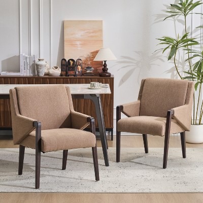 LumiSource Set of 2 Dahlia Dining Chairs Black/Camel: Faux Leather Upholstery, Metal Legs, Foam Fill