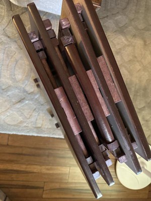 [This review was collected as part of a promotion.] This PJ wood folding, in Espresso, 5 piece set is such a beautiful color. The overall put together is quite easy. Good instruction, packing, hardware and tables are well protected. The overall structured stand is not as stable as I’d prefer. It’s better propped up by a wall.