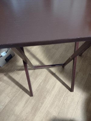 [This review was collected as part of a promotion.] I have had several tv tables in the past and by far these are the best. They are strong and sturdy, easy to unfold and fold and I really like the dark wood look. Easy to clean and well constructed.