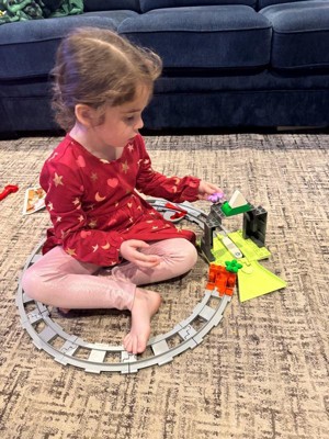 [This review was collected as part of a promotion.] I was so impressed that it was simple enough for my 4-year-old to put together without my help. Only downside is that there isn’t even a small train-like toy that comes with it. The parts also just lay together so it’s very easy for them to break apart. For now she at least enjoys building it, taking it apart, and building it again.