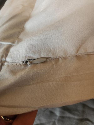 This reversible comforter is very soft and comfy. The down alternative is a plus especially if you have allergies. Putting it in the dryer will fluff it right up. It also comes with two pillow covers to complete the look. The pillow covers are also able to be reversed. They are zippered on the side so you don't have to worry about the pillow coming out.