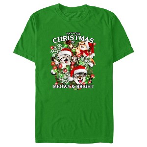 Men's Lost Gods Meowy and Bright Christmas T-Shirt - Kelly Green - 2X Large