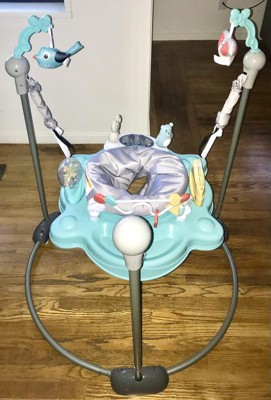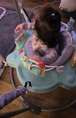[This review was collected as part of a promotion.] My daughter has a little activity table that she can stand in, but she constantly trying to jump in it as well, so I thought this would be a big hit and I was not disappointed. The first time I put her down in it, she was confused and then within 30 seconds, she had figured out how to bounce and now she would easily stay in there for an hour if I let her. She still likes to see me, but it means I can go do something on the other side of the room or in the kitchen while she bounces around. The toys around the edge are fun — she especially likes the little discs that move along the wire — but the best and most unique part of this is the jumping. It was mostly pretty easy to put it together. I needed an extra set of hands at one point to hold the seat while I attached everything. I was a little nervous about it at first, that something would snap and my daughter would fall, but the design seems very well thought out and very safe. I was totally comfortable once I saw how it fit together. I was given this activity center to try as part of the Stellar Product Testing Panel.