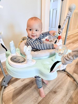[This review was collected as part of a promotion.] We received this product through the Stellar Product Testing Panel. We had high hopes for this bouncer but found it fell short in a few key areas. The weight limit of 25 pounds seemed low, especially since babies likely won’t use it until they have full head control. This means there’s a pretty narrow window for use. Additionally, the springs don’t offer much bounce. It’s more of a subtle movement than a true bouncer or jumper, which was disappointing for our active baby. The toy selection also left a bit to be desired. Our little one enjoyed the spinning clear cylinder with beads but lost interest fairly quickly. While the piano looked fun, its clear design made it less obvious that pressing the buttons would create sound. He loves his other piano but didn’t interact with this one the same way. Other toys, like the spinning animals and the wheel, weren’t intuitive enough for him to engage with, so they didn’t hold his attention. We placed the activity center in the middle of our main living space, hoping it would become a central play station. Unfortunately, our baby often crawled around it to get to his other toys instead. The feature we appreciated most was that the activity center allowed him to move himself around. For a very active baby, this mobility was appealing, but the limited bounce and lack of engaging toys meant it wasn’t as exciting as we had hoped. Overall, while this bouncer has some nice features, it didn’t quite meet our expectations. It might work better for less active babies, but for ours, it just wasn’t engaging enough to compete with his other toys and activity stations.