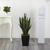 Shh… no one will know your secret with this Artificial snake plant. The waxy, variegated leaves, resemble the real one's intricate detailing that is unique to the Sansevieria. Bring vertical foliage to your space with upward facing, sword-like leaves, maintenance-free. Standing 40” from a black metal planter (included in height), add this faux snake plant to compact spaces like awkward corners, home offices, bathrooms and bedrooms. Silk plants are manufactured using synthetic materials, such as polyester material or plastic, and are well designed and constructed to be life-like in appearance. This item will need to be re-shaped when removed from the secure box to allow it to reach its fullest size. Your artificial plant will look beautiful for years to come; simply wipe clean with a soft dry cloth when needed.