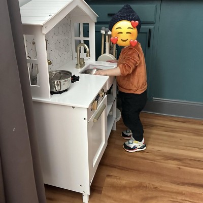 I bought this as a gift for my godson. He’s in love with it. It’s super cute and easy to assemble. I did end up damaging the sink because I put to much pressure on the screw building it. I was bummed but we patched it up. It comes with some accessories that add the final touch.