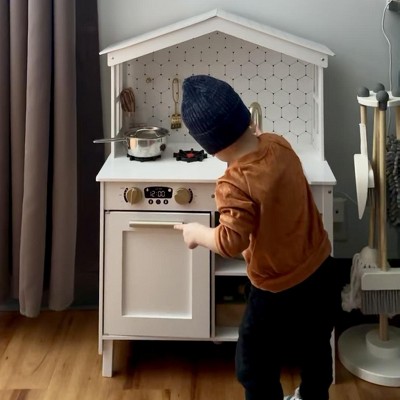 It’s the perfect size for my toddler. The oven is a little hard for her (age 2) to open, but it’s perfect for her to grow with.