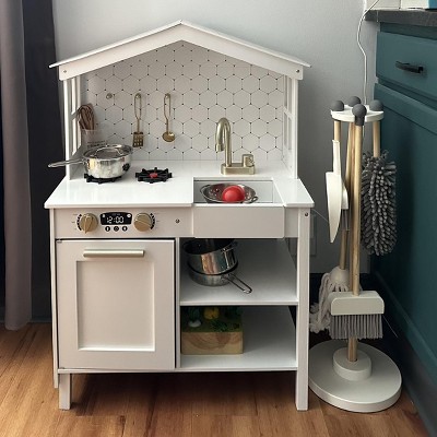 Absolute trash do not waste your money. This kitchen comes out of the box looking like it will be so cute but we got to step 4 of the assembly which tells you to attach the sink sides with ONE screw and they think the rest will be held up by the microscopic dowels we put in earlier??????? Obviously the sink immediately fell apart, could not move on to part 5 of attaching the sink bottom because it couldn’t support the weight. Utter garbage, I’m furious I wasted $70 on this piece of trash what a rip off. Do better target.