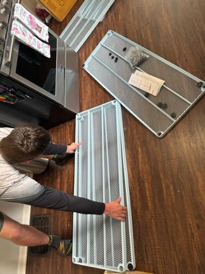 [This review was collected as part of a promotion.] Meshwork 5-tier shelf is a practical and stylish storage solution, offering ample space for organizing various items while adding a modern touch to any room. It is easy to build and it is very sturdy. Shelf can handle your Lawncare equipments to fertilizer bags. It has light blue color which is really cool. It makes my garage look really fantastic. It is light weight. It has flexible bottom support which can we adjusted to balance on any floor.