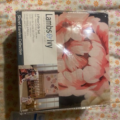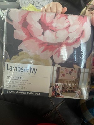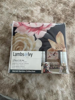 Lambs & Ivy Secret Garden Luxury Floral 3-Piece Cotton Sateen Crib Bedding Set