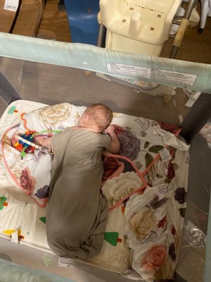 [This review was collected as part of a promotion.] This 3 Piece Crib Set From Lamb & Ivy in the Secret Garden pattern is very beautiful. It comes with a crib skirt, fitted sheet, and reversible comforter. The floral pattern and butterflies make this set so charming. The skirt has a dark slate grey background as does one side of the comforter. The fitted sheet is the same pattern on a white background and matches the reverse side of the comforter. The fitted sheet has elastic all the way around it to give it a snug fit on the mattress. I haven't had any issues with sheet coming undone or sliding off from the mattress. Even with some jumping and bouncing. The comforter is of a very nice size. It is slightly larger than other comforters that come in crib sets. It is very thick and is a great blanket for the cooler winter months, and for cuddling while reading a book The sheet and comforter are soft too. They aren't stiff or scratchy. Our little one loves pointing out the butterflies on them and tries to smell the flowers. I really like how this set looks with our light grey crib and walls. It is a truly beautiful set. And it's super comfortable too.