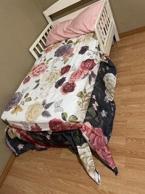 [This review was collected as part of a promotion.] This is way to cute! Of course i thought it would fit my toddler bed but on a crib it fits perfectly! It’s really soft! Has a lot of flowers and butterflies! They also give you a note on sleep safety for infants and information which is amazing! It’s easy to put on and the sheet actually fits the mattress! I’ve had problems with the sheets not fitting with certain brands!