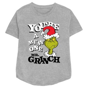 Welcome to the fantastical world of Dr. Seuss! Celebrate the most wonderful time of the year alongside the beloved childhood classic books and movies from every generation with fun new officially licensed apparel for the entire family! This Women's Dr. Seuss Christmas Grinch You're a Mean One Portrait Graphic Relaxed Fit Relaxed Fit T-Shirt features the text: "You're a mean one Mr. Grinch," with Grinch himself across the front. Get ready for the rhyming and whimsy of Seussville with these classic tees today!