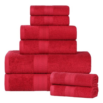 Bring spa-like comfort and everyday functionality to your bathroom with the Blue Nile Mills Cotton 8-Piece Bathroom Towel Set. Crafted from soft, durable cotton, these plush and highly absorbent bath towels feature a classic terry loop weave that helps you dry quickly while providing a cozy feel after every bath or shower. The medium-weight cotton construction offers the perfect balance of softness, absorbency, and long-lasting durability for daily use. Ideal for master bathrooms, guest bathrooms, dorms, gyms, and family homes, these luxury cotton towels maintain their softness and performance wash after wash. Available in a variety of stylish colors, this complete bathroom towel set effortlessly complements modern and classic bathroom decor while adding a fresh, spa-inspired touch to your daily routine.