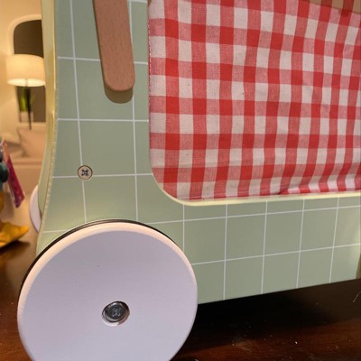 My one year old grandson is using his kitchen cart to practice walking, he loves to pretend eat the ice cream cones and puts toys inside the body of this toy. All around great quality and durable!