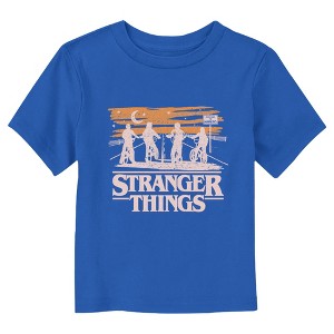 Toddler's Stranger Things Starry Bike Ride Sketch Logo T-Shirt - Royal Blue - 5T