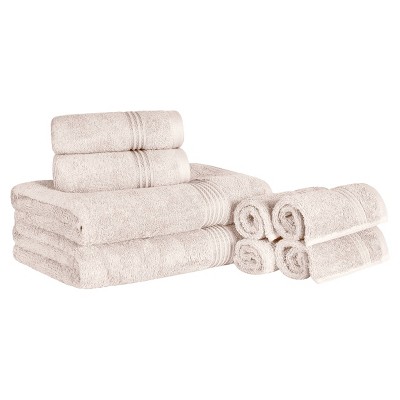 Zero Twist Cotton Bathroom Towel Set, Solid and Jacquard , Stone - Blue Nile Mills