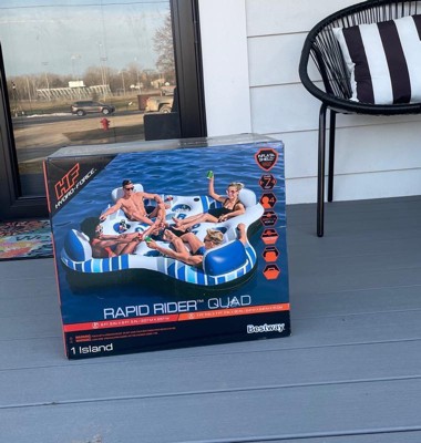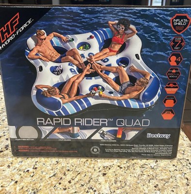 Hydro-Force Rapid Durable Rider Quad 4 Person River Tube with Built In Coolers, Cup Holders and Heavy Duty Handles, Multicolor