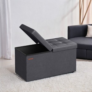 SONGMICS Folding Storage Ottoman, Storage Bench, Footstool, 15 x 30 x 15 Inches Gray
