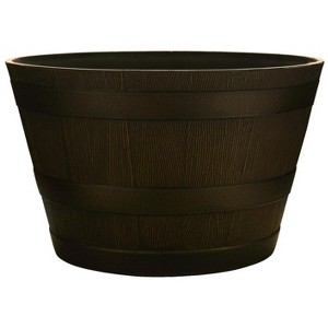 Southern 12.2 in. H X 20.5 in. W X 20.5 in. D Resin Whiskey Barrel Planter Brown