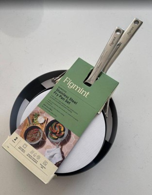 2pc Stainless Steel Ceramic Coated Nonstick Fry pan Set Dark Gray - Figmint™