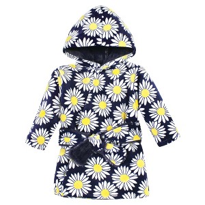 Hudson Baby Infant Girl Mink with Faux Fur Lining Pool and Beach Robe Cover-ups, Navy Daisy - 1 of 2