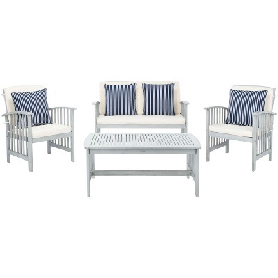 Nunzio 4 Piece Patio Set - Indoor/Outdoor - PAT7031 - Grey/Beige + Solid Pillow - Safavieh