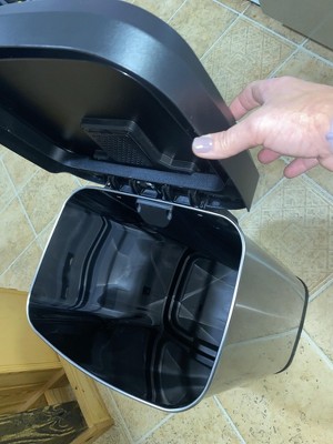 I love this waste basket! It slowly closes and is so quiet. I highly recommend even if it is a little cashy. Worth the money!