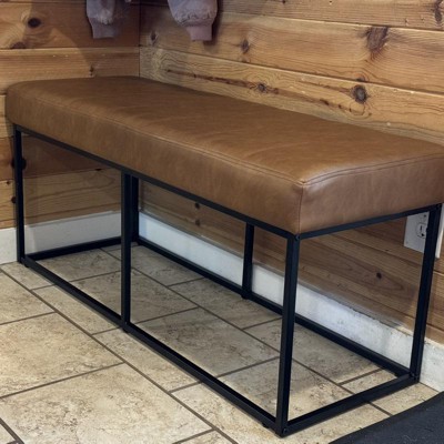 Theodore Bench Faux Leather Caramel - HomePop