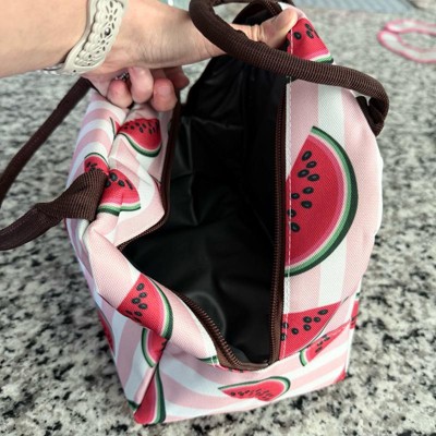 [This review was collected as part of a promotion.] I really like this lunch bag. I got the cute pink stripe design with watermelons. I really like the colors and how it’s easy to carry. It also zips closed which is nice to store all your food. This is a great lunch bag to bring to work and keep your food secure. The handles make it easy to carry. I think it will hold a good amount of food!