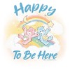 - The smallest family members are also the most stylish with this new Bodysuit that is perfect for crawling around and indoor play! Featuring an adorable graphic of Bedtime Bear and Cheer Bear surrounded by clouds sliding on top of a rainbow with the phrase "Happy to Be Here" in beautiful lettering across the front.