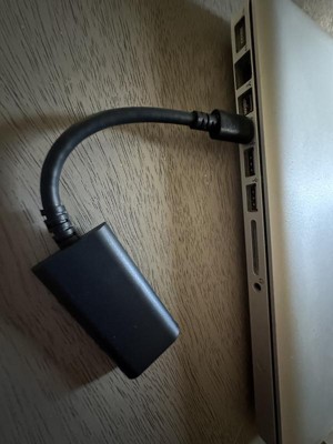 This mini adapter by dealworthy allows you to connect your HDMI cable from laptop to a projector or other monitor. It doesn't feel cheap at all though I wish the HDMI cable completely inserted and didn't leave any of the silver part of the HDMI adapter showing. The adapter is just about six inches long though the packaging states four. Is perfect for hooking up to a projector for movie night in the dorm rooms. Resolution is listed as 3840x2160 at 30 hz.