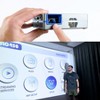 The SLC450 is a remarkably compact and bright projector, easily fitting into a pocket or handbag at just 4” x 5” x 1.3”. Despite its small size, it delivers projection brightness that exceeds typical single LCD projectors by 2-5 times. The use of RGB LED technology ensures vibrant colors and deeper blacks, surpassing the color quality of white-LED (1LCD) projectors. With its short throw optics and 100% offset image, the SLC450 offers versatile projector positioning, a feature not found in 1LCD projectors due to optics size. Furthermore, it operates at an energy-efficient 30 watts, making it suitable for outdoor use with car power adapters and various battery sources. It boasts onboard 2.4g/5g wireless connectivity, Bluetooth 5.0 compatibility, and a range of additional features, including HDMI input, Micro SD Card/USB reader, headphone output, and 12V power supply, all in a small form factor. The SLC450 also offers onboard 4-way keystone and image rotation, making it highly adaptable for various installation scenarios.