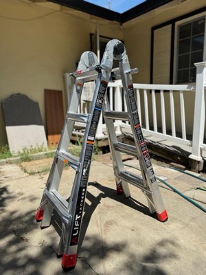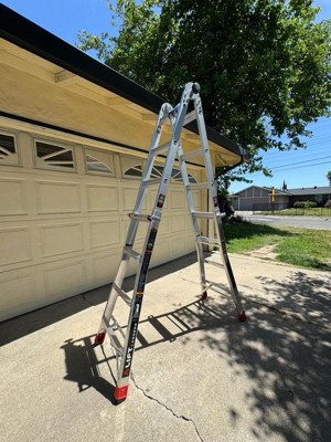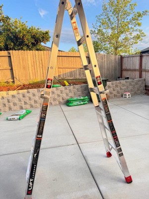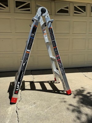 [This review was collected as part of a promotion.] I was gifted this Lift Ladder in exchange for an honest review. This ladder is amazing. It locks in several different positions for multiple uses. It extends to 18 feet, which is ideal for my home because I have high ceilings. It's safe, versatile, and very durable.