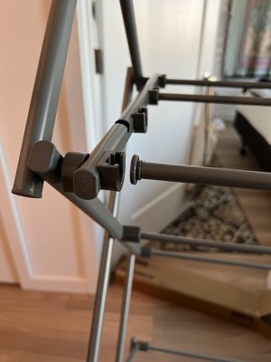 Among everything else, this is why I don't like shopping at Target. The quality is literal garbage. The rack is supposed to be collapsible. It's not. It's supposed to be steel. I received plastic. One of the bars wasn't even the right length so I couldn't connect it. I had to return it. It is nothing like the product description and it's awful, cheap quality. Save your time and money.