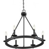 Collection: Middleton, Material: Metal, Finish Color: Matte Black, Width: 25", Height: 23", Length: 25", Hanging Method: Chain, Chain Length: 120", Lamping Type: Incandescent, Number Of Bulbs: 6, Wattage: 360 Watts, Dimmable: Yes, Moisture Rating: Dry Rated, Desc: Get comfortable modern farmhouse flair with this Savoy House Middleton 6-light chandelier. It flaunts a visual, stylish open hoop design and a sleek satin nickel finish. Chandeliers can be used in a wide variety of spaces, including but certainly not limited to dining rooms, living rooms, great rooms, bedrooms, kitchens, foyers, offices, closets and even bathrooms! Because this chandelier is chain-hung, you can use as much or as little chain as you need to fit your specific hanging height needs, and it can be used on a sloped ceiling. Since the bulbs are exposed, try using stylized bulbs (not included) like tubular shape or Edison style for a different look! The satin nickel finish can be matched with nickel hardware or mixe