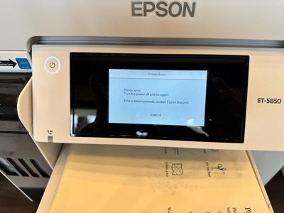 This printer is awesome, if and when it works- until it doesn't. This is my 6th Epson and my 3rd ET-5850 and i loved it until today, when it gave me an error message (034019) and asked me to switch it off and on again. Well, funny enough, both of my ET-5850 standing next to each other had this problem. One recovered, the other one needed this ritual twice and is now sitting there idle and just does not accept any print jobs.