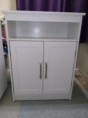 [This review was collected as part of a promotion.] Love this cabinet. Modern yet farmhouse-friendly, sturdy shelf, space-saving dimensions, easy to assemble, and stylishly functional. It's ideal for small spaces, holds more than expected, and was surprisingly quick to assemble.