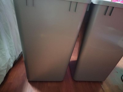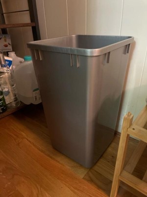 [This review was collected as part of a promotion.] Rev a shelf polymer replacement 27 quart trash bin silver two pack is very sturdy and very large. The 27 quart trash bin is perfect size for inside the cabinet. I recommend for others that want to keep the trash bin hidden.