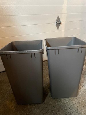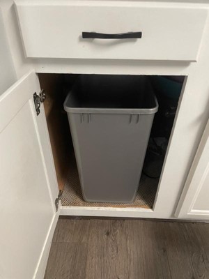 [This review was collected as part of a promotion.] These are wonderful! We are in the process of remodeling our kitchen to have the cabinet drawers that pull out with the trash cans so this was perfect timing for this product. The trash cans are very durable! I have 4 kiddos who knock them around often and they don't scratch or bend. They can hold a decent amount of trash in them and are very secure. I like the Grey color as well. It's neutral and can fit in with any style kitchen!